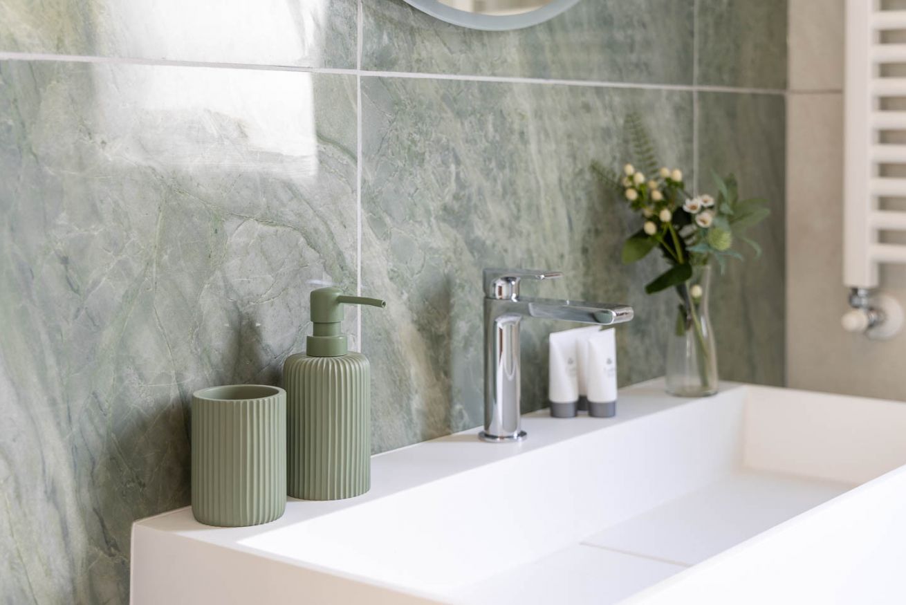 The three modern bathrooms are fully equipped, offering spacious showers, complimentary toiletries, and hairdryers.