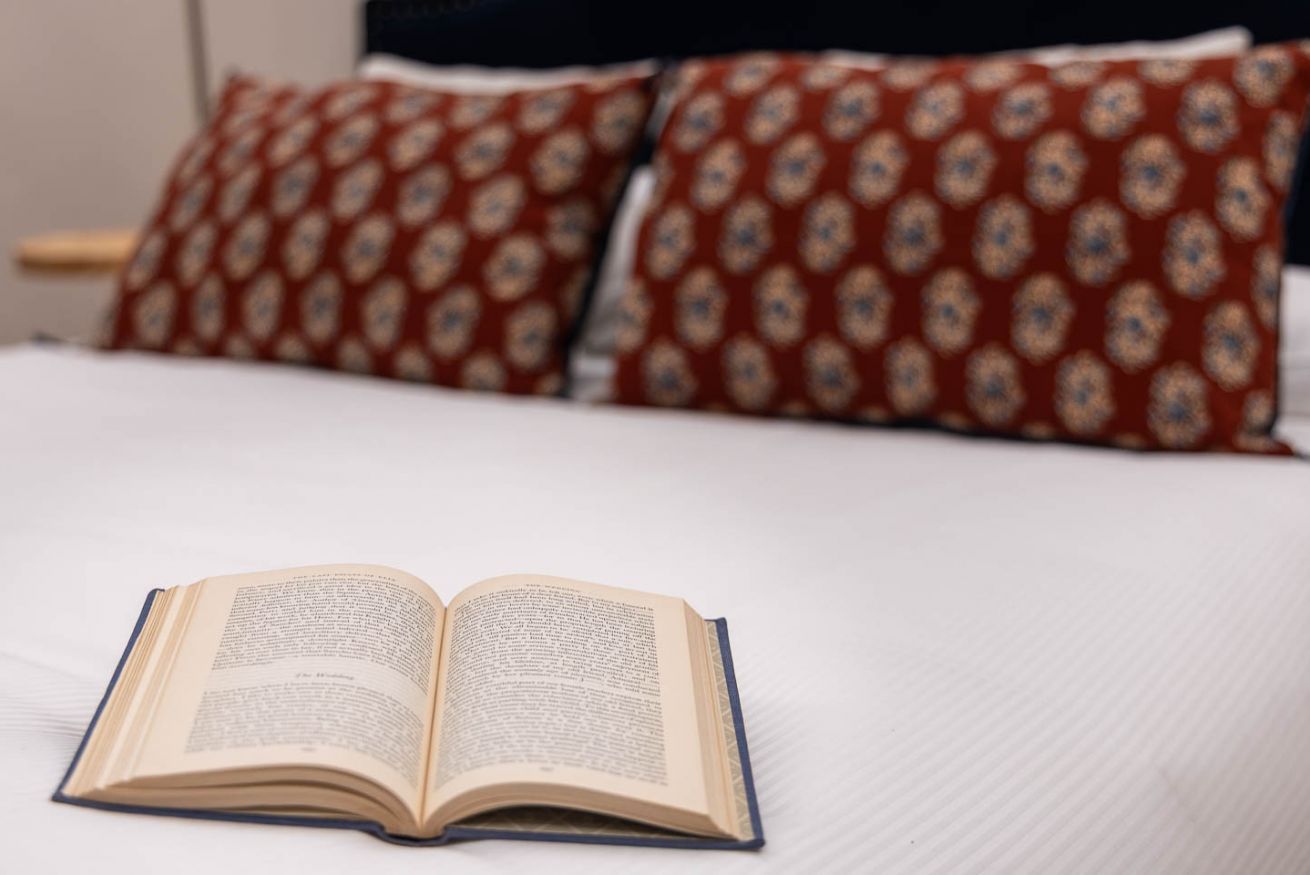 The living area is bright and stylish, with a window framing the Dome—providing a unique view at any time of day.