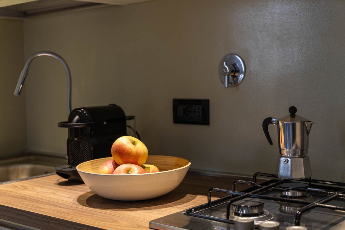 The kitchen is ideal both for a quick breakfast and for those who love cooking: microwave, dishwasher, kettle, coffee machine, and everything needed for short or long stays.