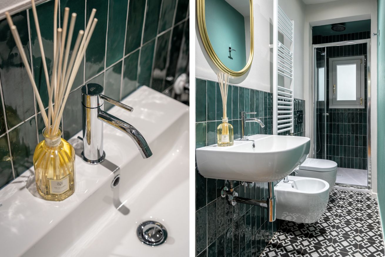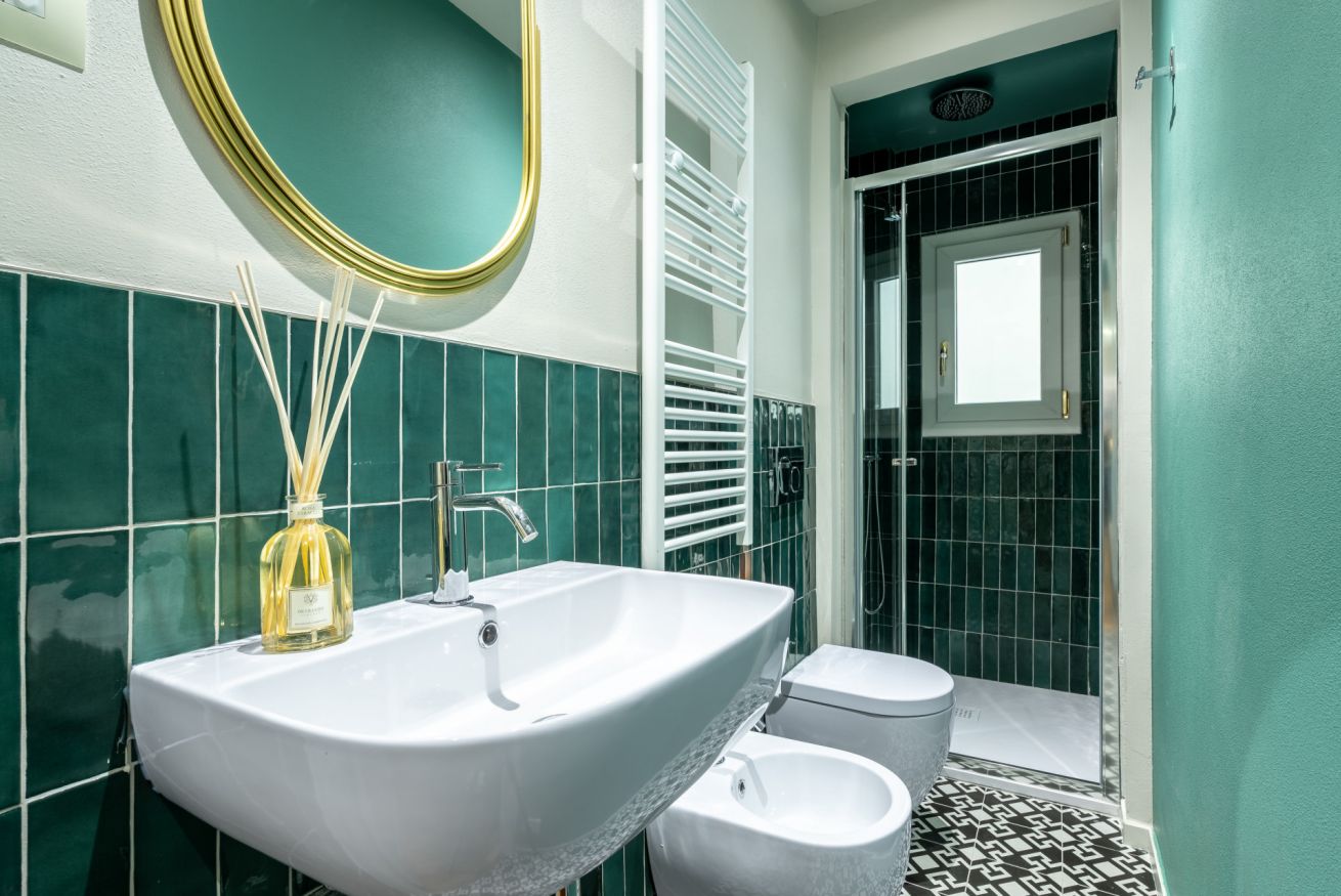 Il secondo bagno è una vera chicca: uno spazio raccolto, dotato di doccia emozionale con luci cromoterapiche e lavandino – perfetto per un momento di relax dopo una giornata trascorsa tra le meraviglie di Firenze.