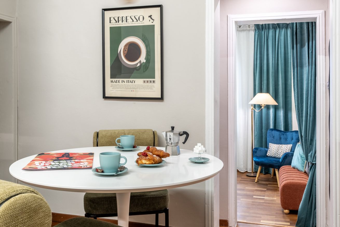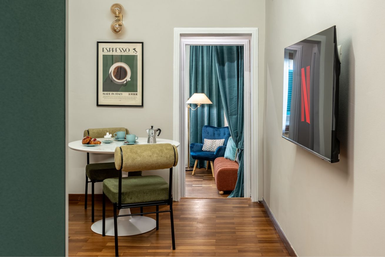 Elegante appartamento nel cuore di Firenze, a due passi dai principali monumenti, con interni di design curati nei dettagli, colori raffinati e un’atmosfera accogliente.