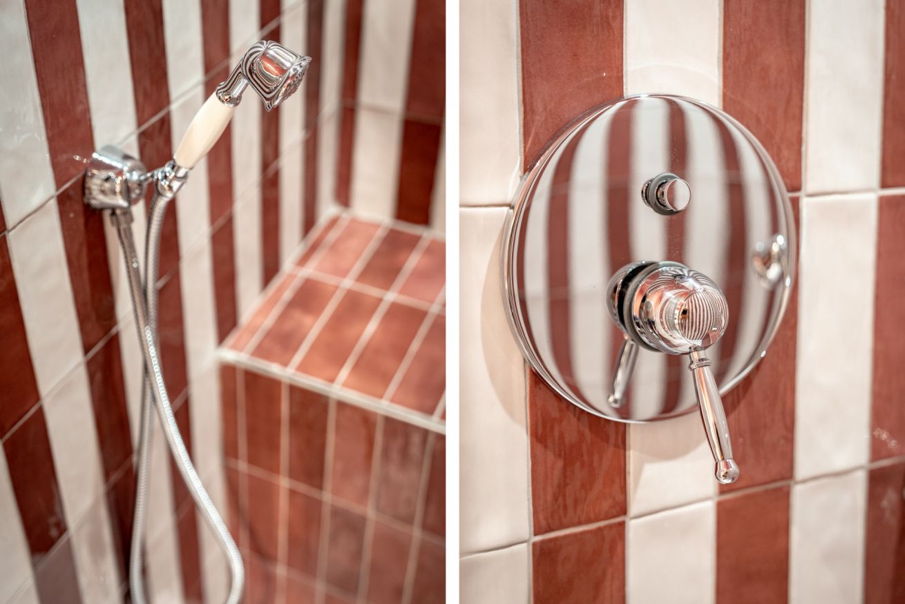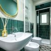 Il bagno principale dispone di un’ampia doccia, WC, bidet e lavandino, con piastrelle eleganti e finiture sobrie, pensate per offrire praticità e comfort quotidiano.