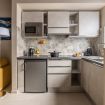 Una moderna zona soggiorno con cucina completamente attrezzata per preparare i vostri piatti preferiti.