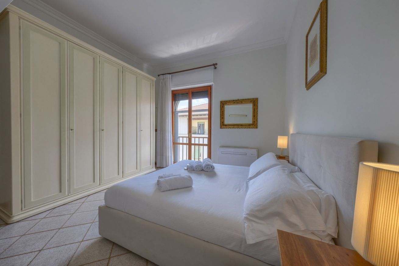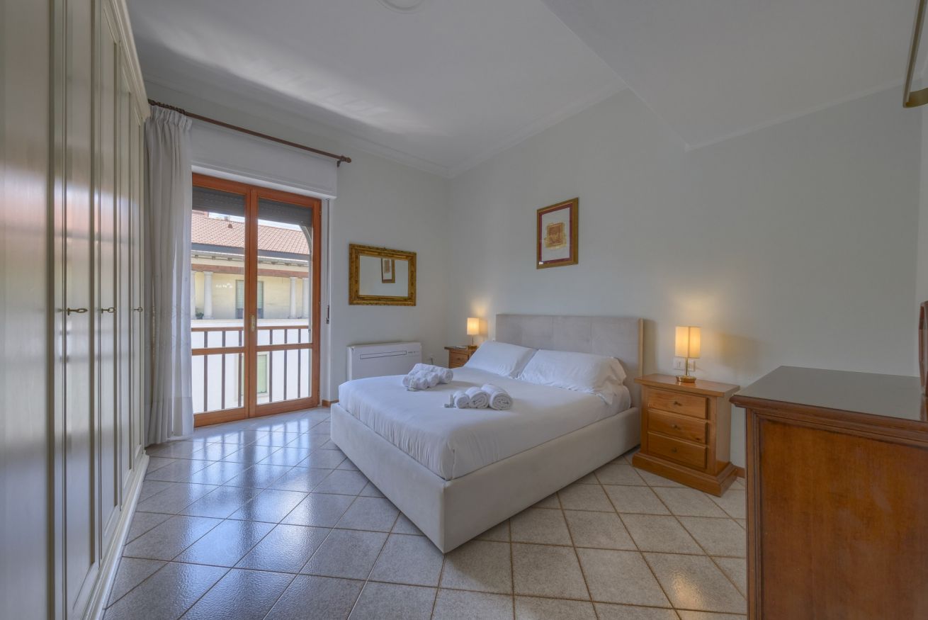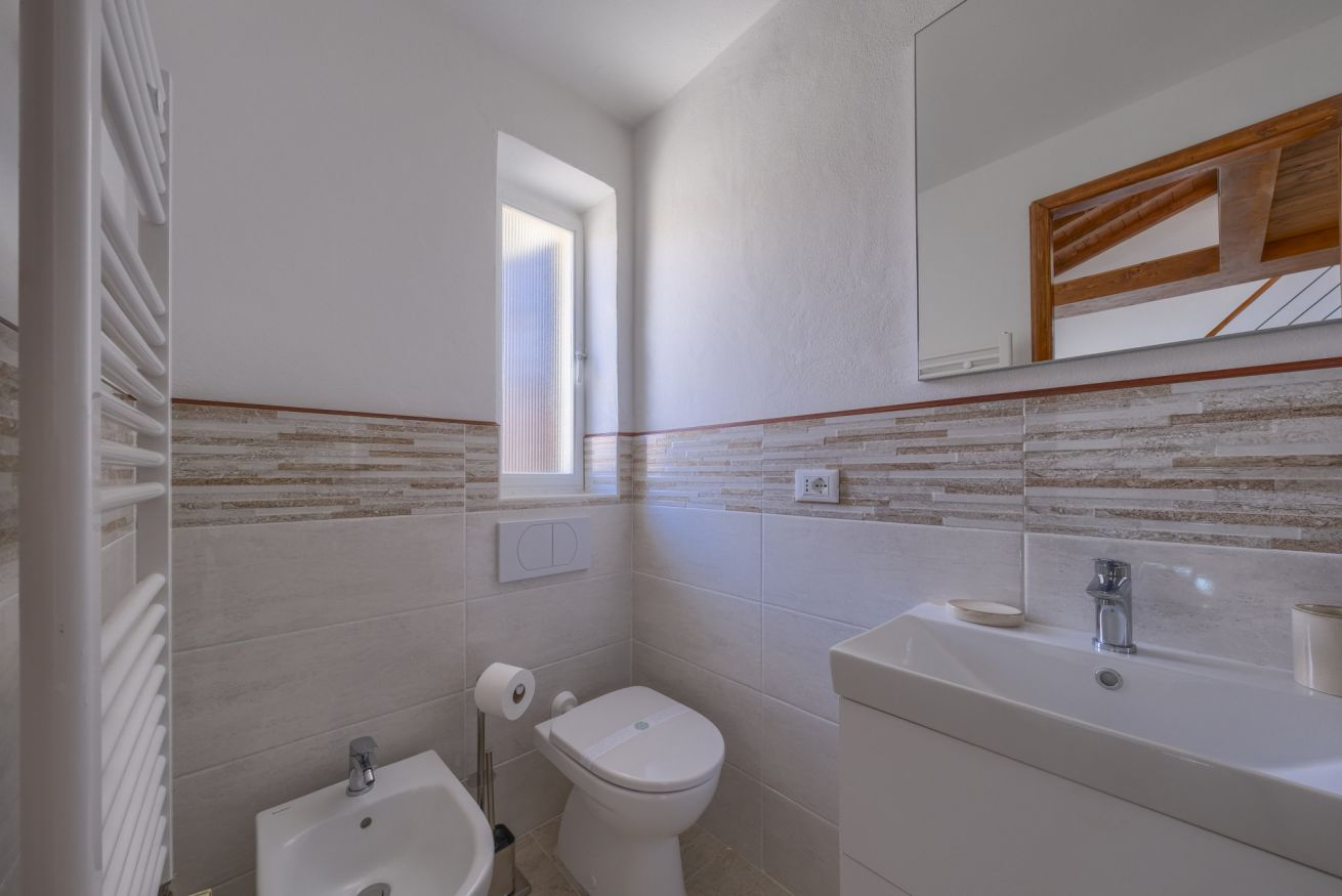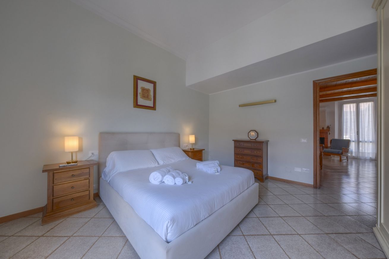 Il primo piano ospita anche una delle due camere da letto, arredata con un confortevole letto matrimoniale e ampi armadi per riporre i vostri effetti personali. Adiacente alla camera, troverete uno dei due bagni, moderno e funzionale, con doccia spaziosa, asciugamani soffici e prodotti di cortesia.