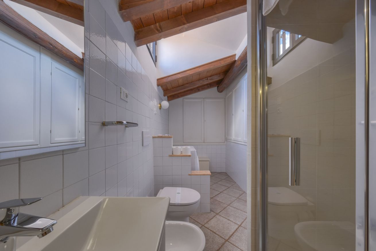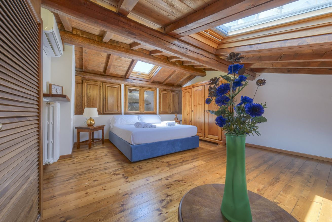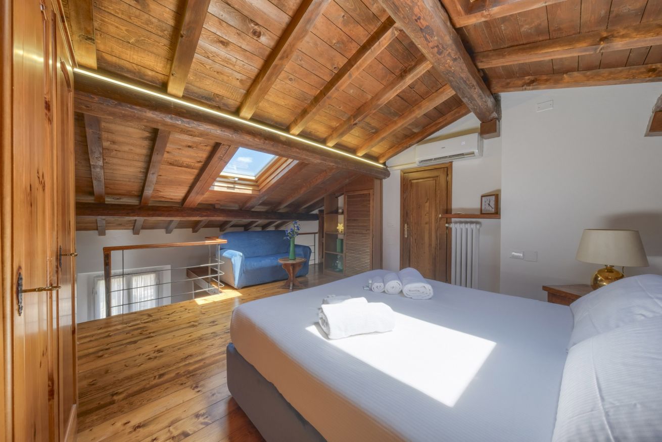 Salendo al secondo piano, scoprirete una deliziosa mansarda che ospita la seconda camera da letto. Questo spazio accogliente, con travi a vista e un'atmosfera intima, è dotato di un altro letto matrimoniale e offre un'area perfetta per un po' di tranquillità. Al piano mansardato si trova anche il secondo bagno, anch'esso completo di tutti i comfort necessari.