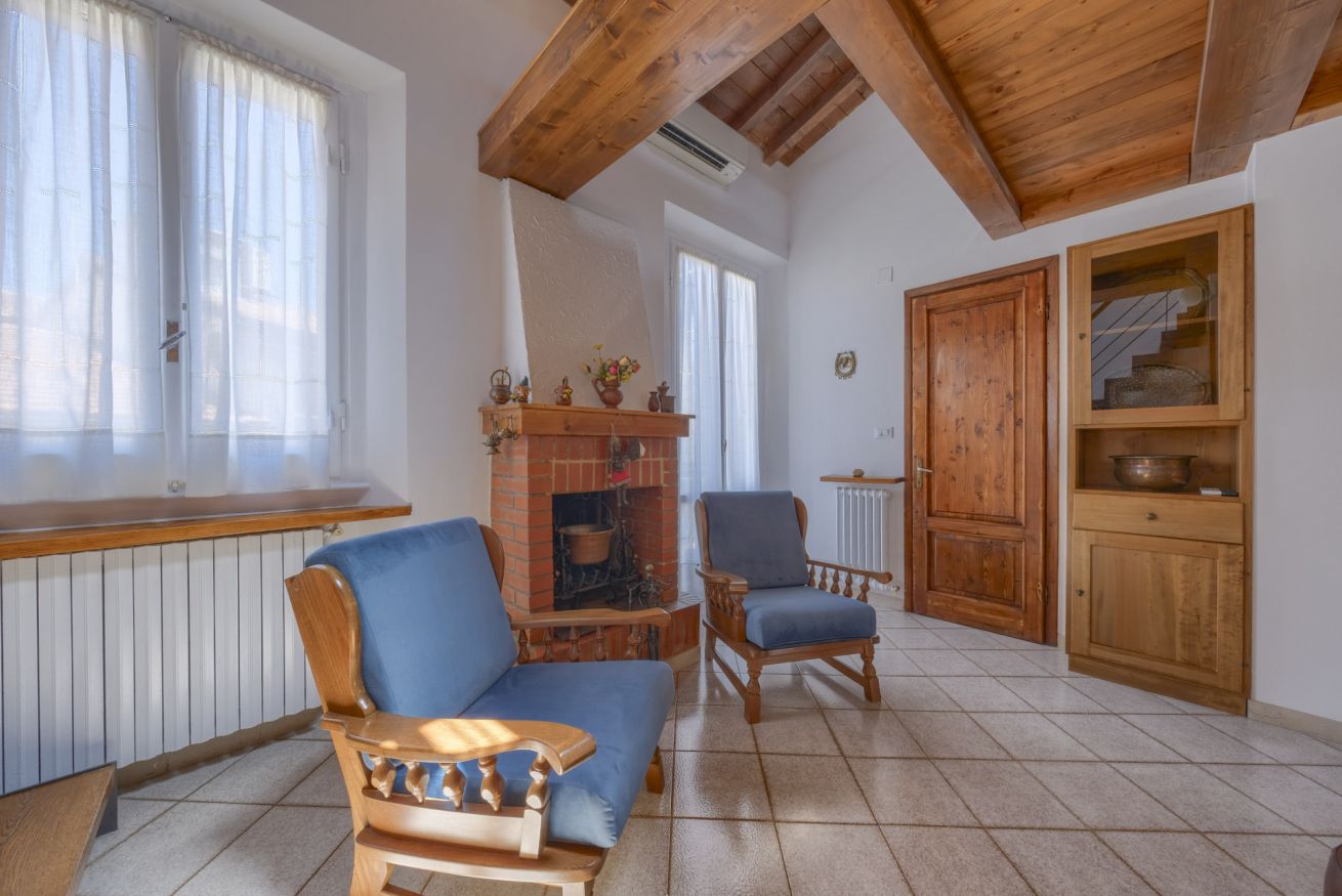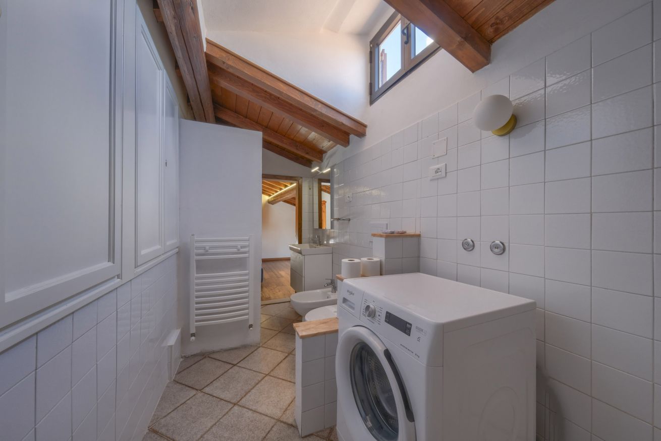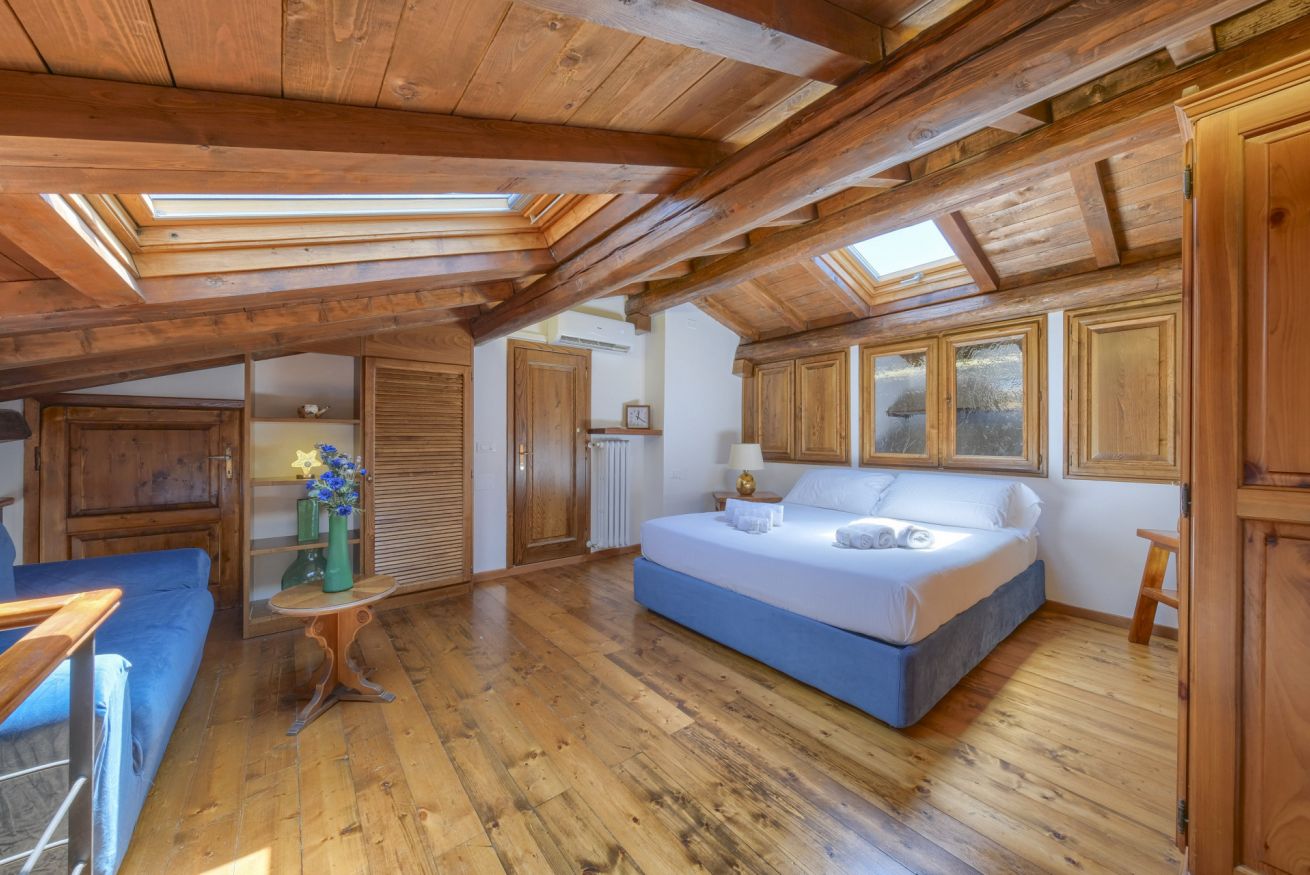 Salendo al secondo piano, scoprirete una deliziosa mansarda che ospita la seconda camera da letto. Questo spazio accogliente, con travi a vista e un'atmosfera intima, è dotato di un altro letto matrimoniale e offre un'area perfetta per un po' di tranquillità. Al piano mansardato si trova anche il secondo bagno, anch'esso completo di tutti i comfort necessari.