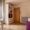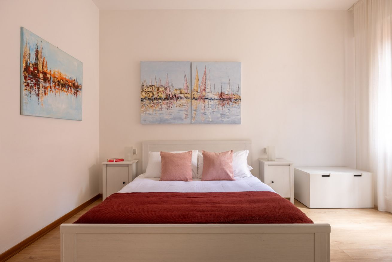 La camera matrimoniale è silenziosa e confortevole, arredata con tonalità neutre e materiali funzionali, pensata per offrire un riposo rigenerante.