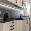 La cucina è completa di ogni accessorio: forno, lavastoviglie, microonde, tostapane, macchina da caffè, bollitore, stoviglie e molto altro, perfetta per chi ama cucinare anche in vacanza.