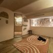 Al piano inferiore si trova una sala yoga/mindfulness: uno spazio intimo, perfetto per rilassarsi o meditare, completo di bagno di servizio con WC e lavabo.