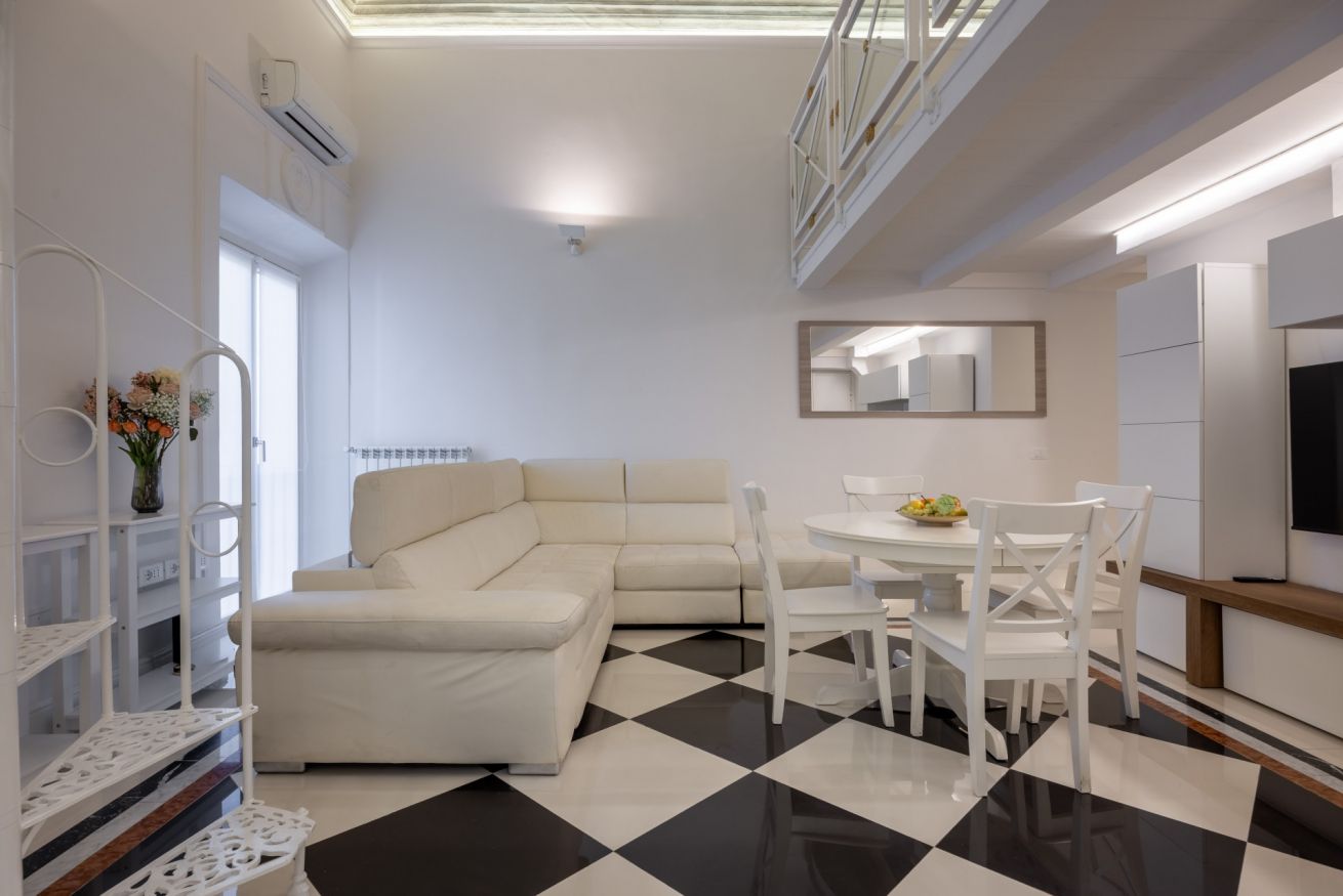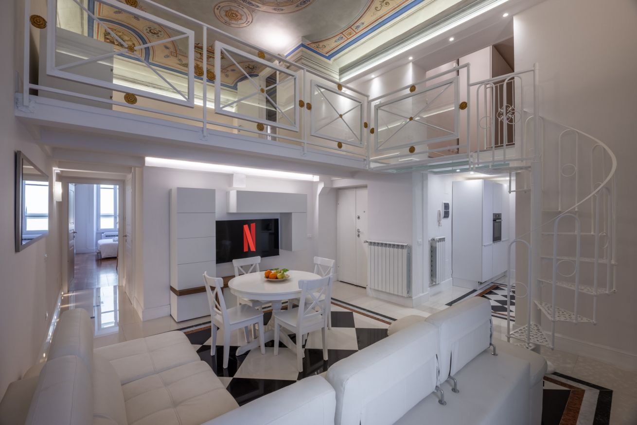 Benvenuti in The White House – Palazzo degli Affreschi, un raffinato appartamento che unisce la storia di un palazzo d’epoca con il comfort moderno di un loft di design.