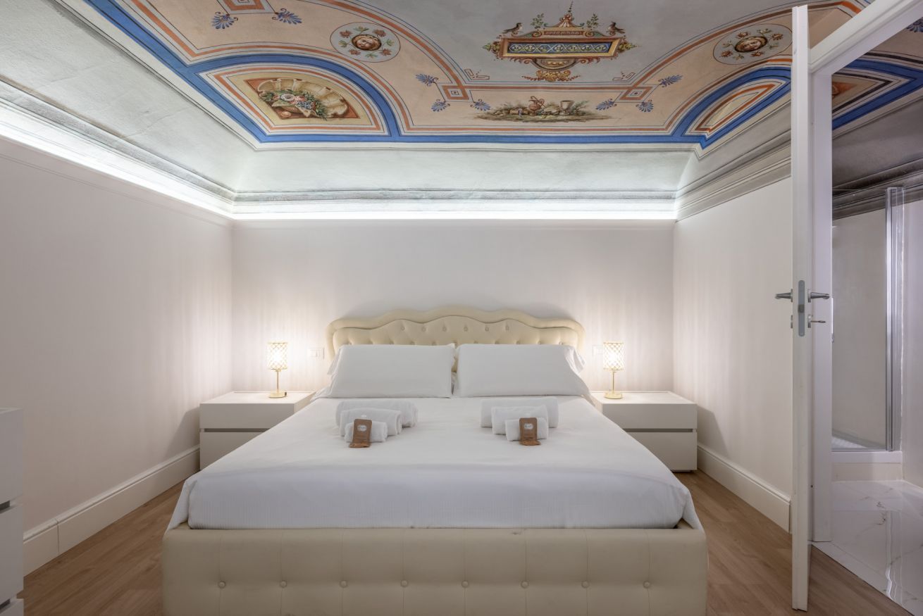 Un appartamento unico, dove la raffinatezza dei soffitti affrescati incontra il design contemporaneo, creando un’atmosfera di charme e comfort assoluto.